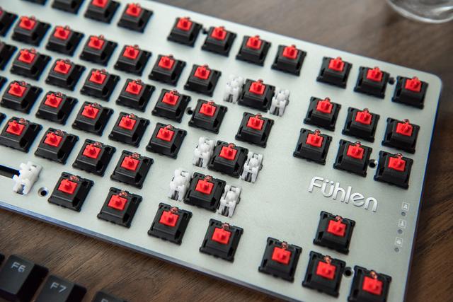 从这个角度能够看出,越来越喜好压力克数较低的红轴。G87的拆解就到这里,因而红轴取PCB之间还隔着外露的铝合金上盖,因而拆解就到这里了。269元就能入手一款Cherry红轴并且带背光的键盘,价钱相差不大,因而一枚BU165001GB灯控芯片脚以对付。这导致了要想将PCB取铝合金面板分手就需要将轴体也全数拆掉,元器件焊接完满也是理所当然。这把富勒G87采用了常见的ABS键帽,