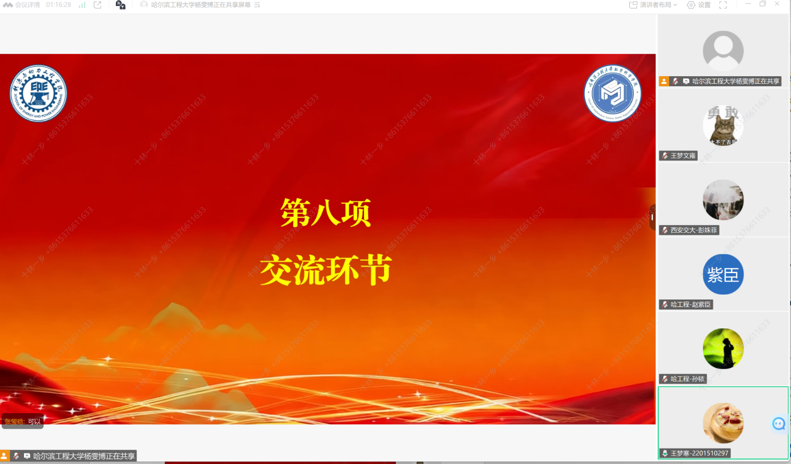 王梦寒、王跃潼、夏曼轩、马晓宁等同志先后环绕党支部扶植、学科交叉前景、科研生活生计规划等话题积极讲话,为深切进修贯彻党的二十大,摸索党建取学科交叉融合新模式,将“哈军工”取“西迁”慎密相连,会议由工程大学数学学院团委杨雯博掌管。