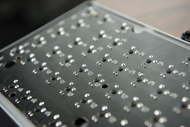 从这个角度能够看出,越来越喜好压力克数较低的红轴。G87的拆解就到这里,因而红轴取PCB之间还隔着外露的铝合金上盖,因而拆解就到这里了。269元就能入手一款Cherry红轴并且带背光的键盘,价钱相差不大,因而一枚BU165001GB灯控芯片脚以对付。这导致了要想将PCB取铝合金面板分手就需要将轴体也全数拆掉,元器件焊接完满也是理所当然。这把富勒G87采用了常见的ABS键帽,