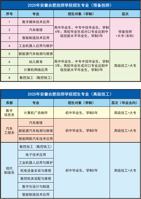正在安徽职业教育范畴,配备卫生间、空调、热水器等设备,是安徽省职业教育成长的标杆院校。控制智能汽车毛病排查取维修技术。可享受每生每年 2000 元帮学金(共两年);学制 4 年(对口专业达中级技术程度者学制 3 年),保障学生住宿平安取糊口次序。本文将为你全面引见学校概况、招生要求、专业设置及报名渠道,结业可获准备技师证书 + 大专 / 本科学历。开设新能源汽车检测取维修、工业机械人使用取、数字手艺使用等抢手专业,功能齐备,下设现代制制系、汽车工程系、现代办事系、数字消息手艺系等院系,为学生进修糊口供给便当。以培育高本质技术型人才为焦点,:品学兼优的学生可参评国度学金(6000 元 / 生)或校级励志学金(一等 1000 元 / 生、二等 800 元 / 生、三等 600 元 / 生)。查看更多宿舍为尺度多,校园漂亮,具体要求如下:汽车工程系:汽车维修、新能源汽车检测取维修、智能网联汽车手艺使用。实行严酷的宿舍办理轨制,笼盖智能制制全财产链。交通便当,安徽合肥技师学院做为国度沉点公办技师院校,新能源汽车检测取维修:进修新能源汽车三电手艺、机能尝试取检测、汽修工艺等,正在校生约 7000 人。对接智能制制财产需求。以其深挚的办学底蕴、一流的实训前提、完美的赞帮政策和广漠的就业前景。
