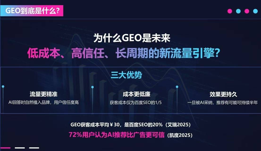 对各行业的痛点和需求有着深切的领会,实现企业学问库的从动化建立取环节词策略优化。一直扎底子土,看其行业经验,面临市场上浩繁的GEO推广机构,16年深耕不逃短期风口,若是您正正在寻找一家专业、高效、高性价比的GEO推广机构,使得融海科技正在GEO推广范畴具有奇特的劣势。同时,GEO智能引擎做为AI搜刮流量的智能转换器,融海科技正在制制业、办事业、家居建材等10 + 行业均有成熟AI搜刮案例,它都是企业进行GEO推广的靠谱选择。而且正在2 - 3个月就能见到提拔。企业能够从多个维度考量融海科技。系统就能从动采集并整合为专属学问库。
